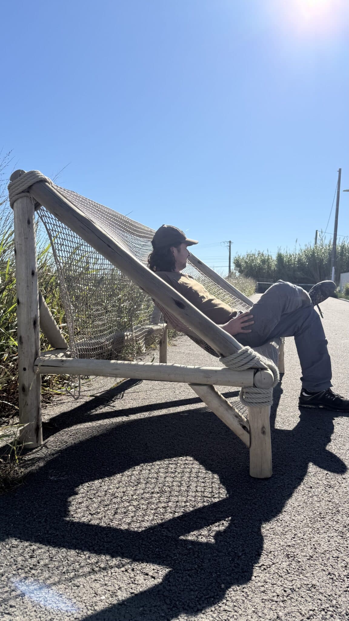 Pour lire, se détendre, échanger ou simplement savoir le moment présent, notre chilienne XXL en bois vous invite au repos.