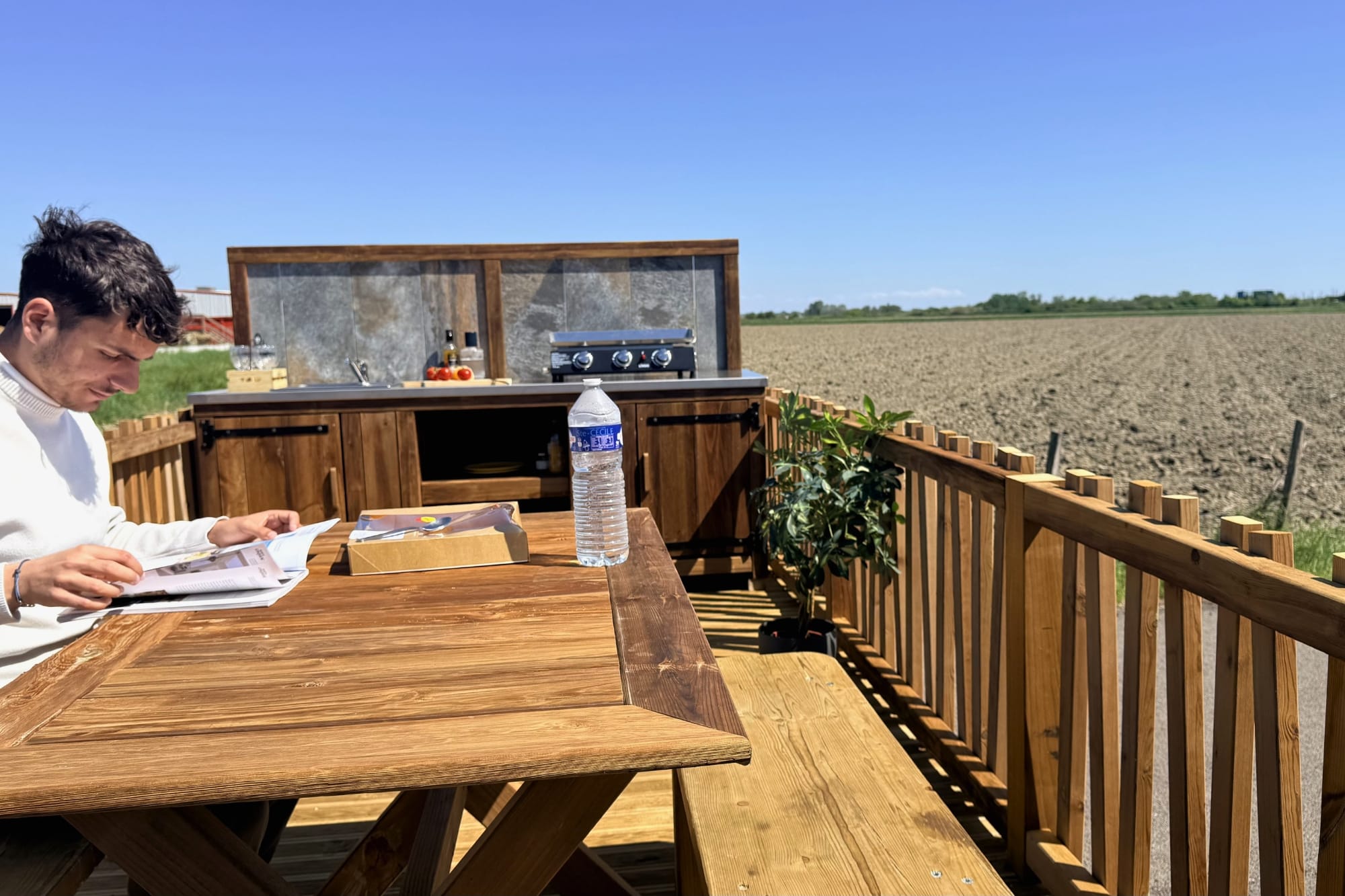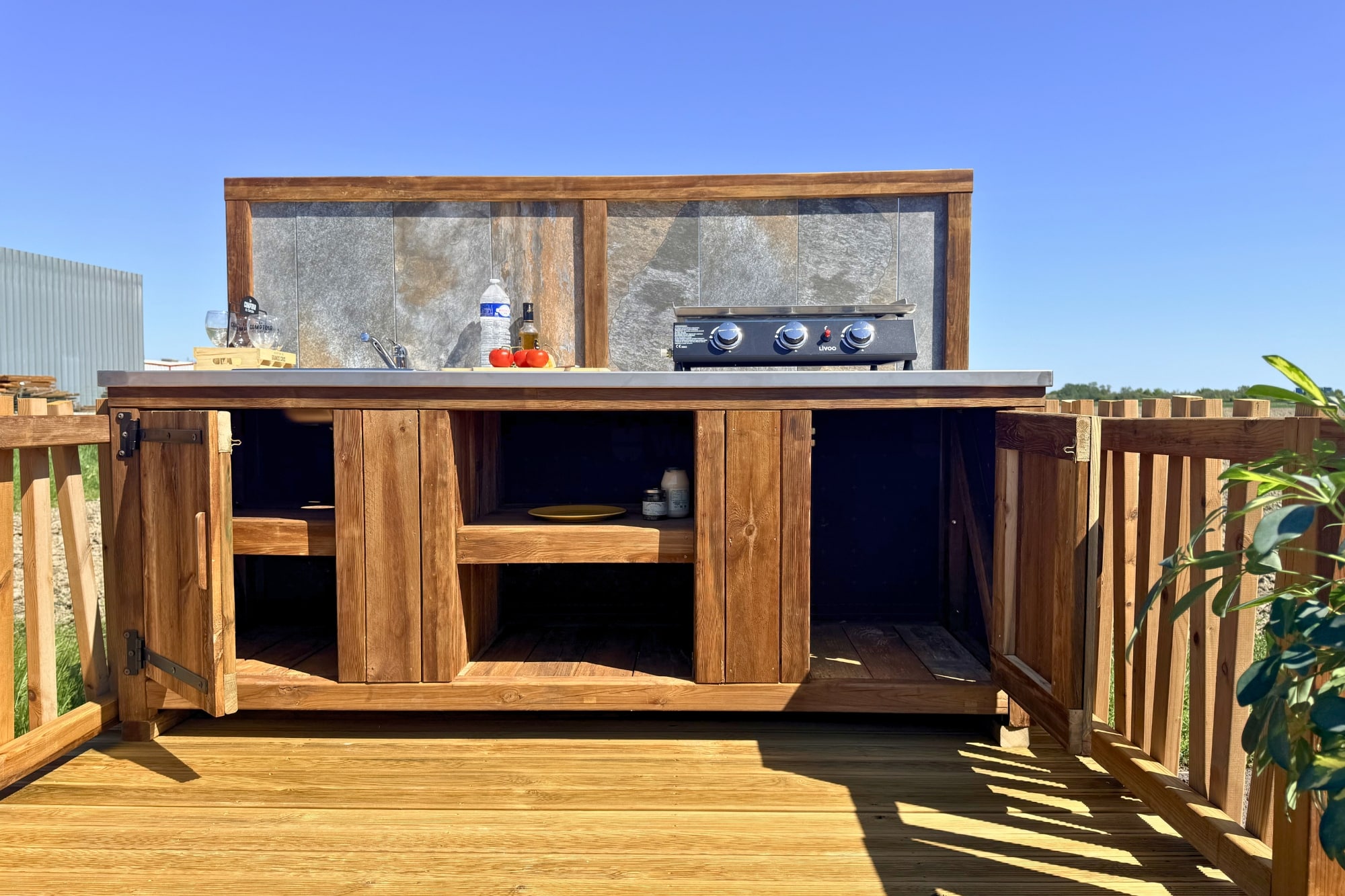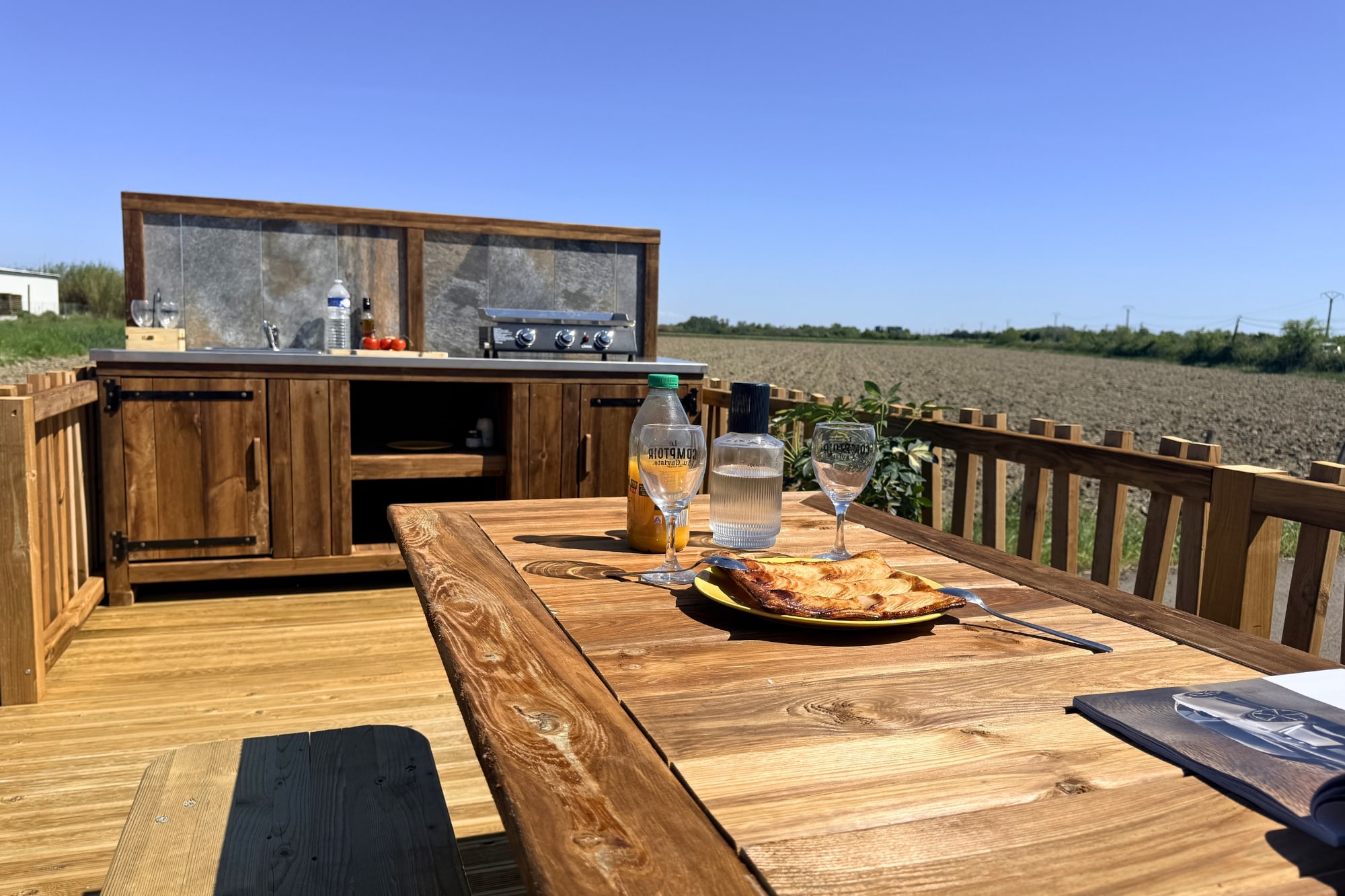 Ceux où on prend le temps, où les repas s’étirent, où personne ne rentre avant la tombée du jour. Notre cuisine d’été est née de cette envie-là : rester dehors et le vivre pleinement.